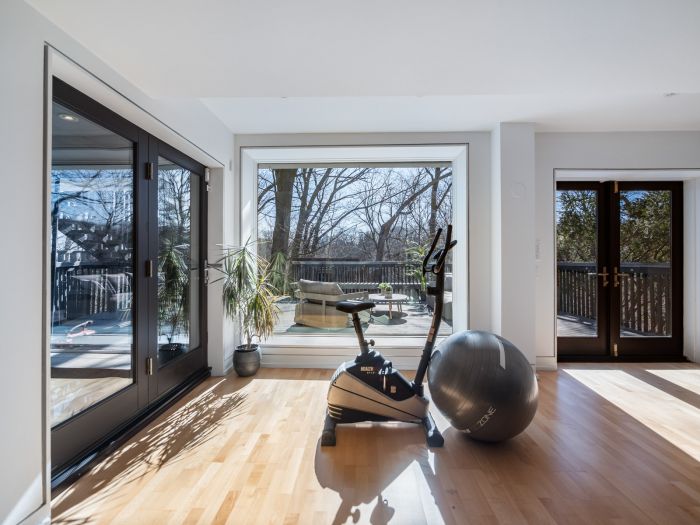 From the jaw-dropping 265-foot depth of the lot backing onto the ravine, you know you're in for something special. Framed vistas of four-season natural beauty and meandering trails pour into the open living spaces through soaring walls of glass on every level. It's an immersive experience that instantly transports you from the cosmopolitan buzz into Mother Nature's tranquil embrace.