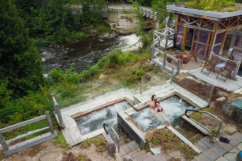 Baluchon's Nordic spa with outdoor hot tubs and saunas built into the river bank overlooking the Loup offers a wide range of treatments featuring their classic Archipelago Isles and Masso-Kinesiology Therapeutic massages Their organic cosmetics and massage gels made with natural botanicals and Quebec made soaps contain seaweed and goat milk bring you back to earth.