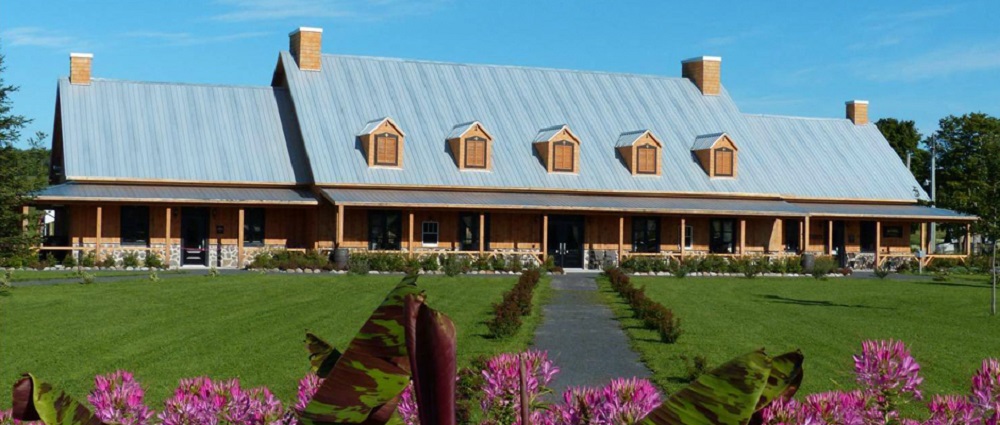A single clapboard building in the heart of the grove grew into a village-like cluster of buildings recreating the milieu of French-Canadian frontier culture from the 1800s. 4 traditional log cabins host overnight visitors, a fieldstone bakery produces bread baked in an 8x10-foot wood-fired oven, and a general store sells all things maple. Pierre and his team created the structures from centuries-old log dwellings disassembled in neighboring towns, transported, and rebuilt here.