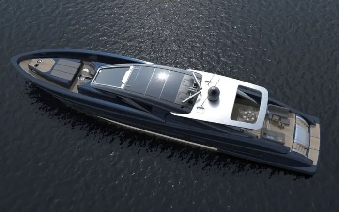 Meanwhile, the range is estimated to be about 450 nautical miles; There is also the option for twin MTU 16V 2000 M96L engines for a 32-knot cruising speed but with a reduced range of 370 nautical miles. Additional descriptions of the BLUEPHIRE 34 highlight the “loft-like interior with unprecedented amounts of natural light” and “high degree of customization.”
