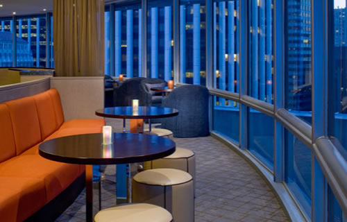 Be sure to sit in one of our comfortable leather-like booths and take in the panoramic views of the historic ferry building, San Francisco skyline, plaza and bay. Enjoy the chic lounge area with its billowing white curtains, hanging gardens effect and avant-garde ambiance overlooking the 18-story lush atrium. Ideal for a romantic night out or for a business dinner after your conference, this sophisticated lounge experience is a ?must see, must do? on any visit to San Francisco. Our Embarcadero bar features items such as: