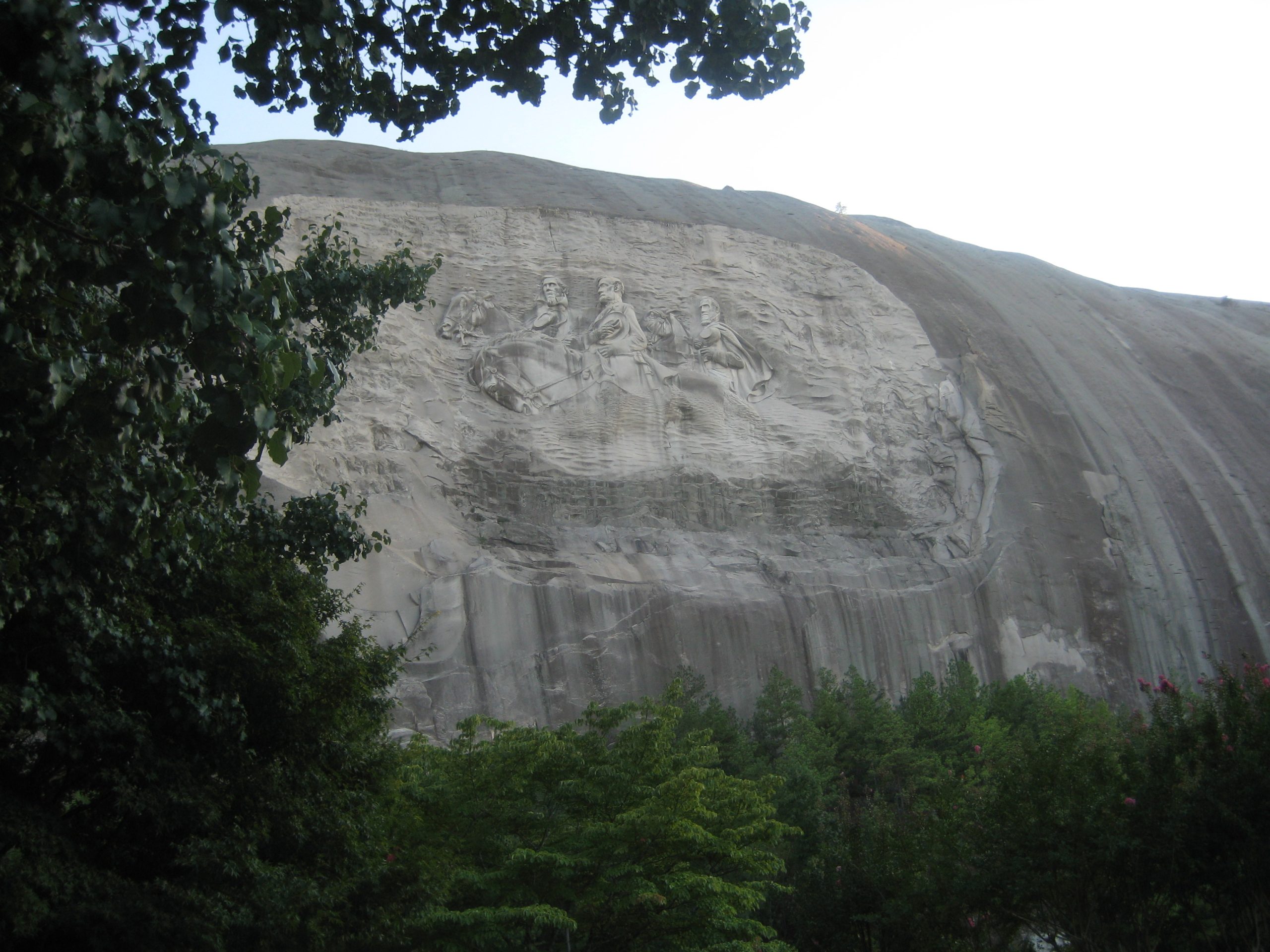 Surrounding the namesake quartz dome monadnock is the Stone Mountain Park. Widely known for its geological features, one side of the mountain features a bas-relief of three Confederate soldiers; Stonewall Jackson, Robert E. Lee, and Jefferson Davis.