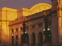 The Classical architecture of the station makes for a grand entrance through any doorway. Outside are several well-known statues, and inside trains still run to major cities along the Eastern seaboard