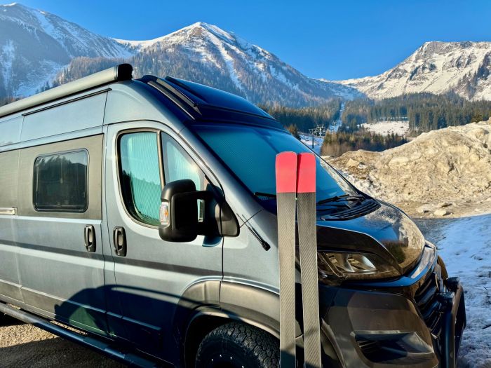 Whether you're road-tripping across the Rockies or working remotely from the coast, the layout is designed for pure comfort. Swiveling seats, a modular table setup, built-in cooler, and wireless chargers tucked into each armrest all come together in a layout that makes long hauls feel short. A rear power-folding bench transforms into a bed, perfect for impromptu overnights or full-on van life.