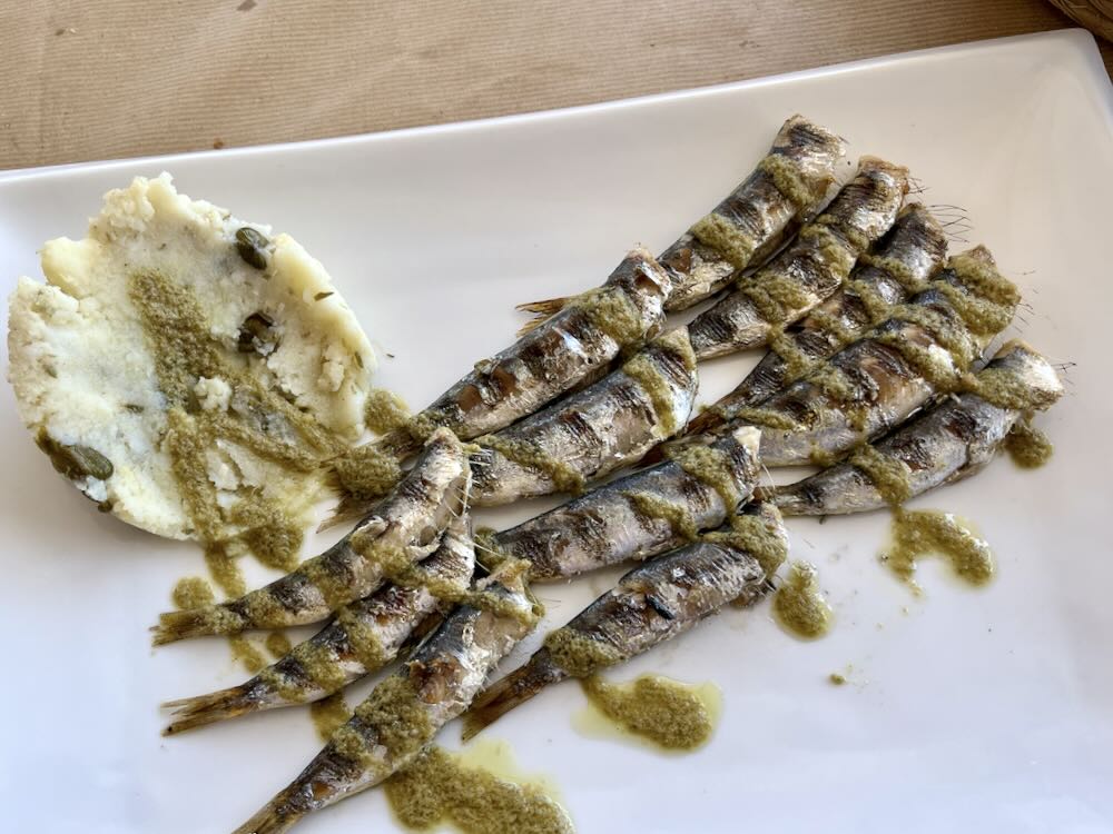 For mains, we chose octopus on the grill and sardines tenderly cooked with a mix of potatoes, almonds, capers, oil and vinegar. For a sweet ending, we tried the house mousse halva, a delicious homemade dessert with caramel nougat. To top off our leisurely lunch, we sipped on a classic Greek digestive – the aromatic mastica, harvested from tree resin, served with ornate glasses and mini decanter.