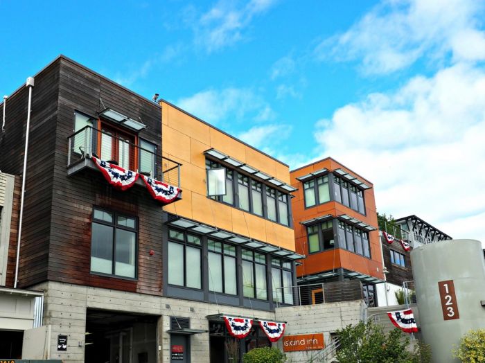 Nestled perfectly amid the hustle and bustle you’ll notice a colorful and swanky set of industrial buildings terraced into the hillside. Those buildings make up the amazing Island Inn at 123 West.