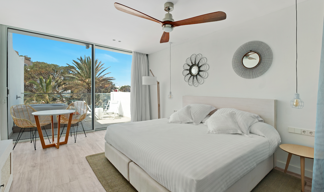 The vibe at Barceló Portinatx is rather like that of a very stylish, sophisticated beach house, but because this is Ibiza – the Mecca of hippies – the style is embellished with breezy bohemian touches. Calm, neutral colors are livened up with pops of vivid blue, imaginative paintings and art, and rustic wicker furniture. As you arrive in the bright lobby, a welcome drink, fruit platter and sincere, smiling staff await, and once you’ve checked in you can wander up to the 134 bedrooms and suites.