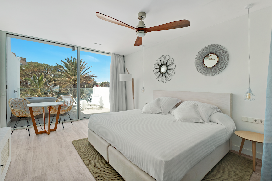 The hotel doesn’t scrimp on food options, either. In the mornings, the breakfast buffet has a large enough spread to satisfy even the fussiest of eaters: aside from the usual hot food, the hotel also offers five different types of milk and about 10 different juices. The poolside bar and restaurant have an extensive menu: from traditional Spanish dishes like paella, patatas bravas and grilled octopus to more international options like pasta, burgers, quinoa salads and grilled fish. The cool bar by the lobby is a great place to begin your evening; sip a few refreshing cocktails before stepping across to Portinatx cove to watch the inimitable Ibiza sunset.