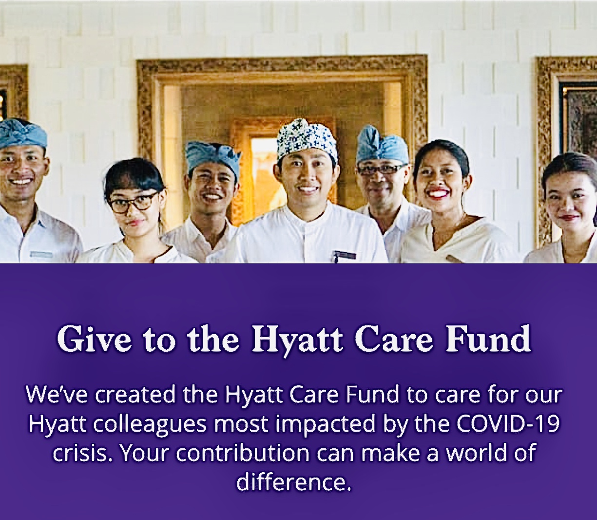 Want to help? According to Hyatt's website, contributions to the Hyatt Care Fund will support colleagues who are facing financial hardship due to COVID-19. This effort will focus on supporting colleagues with the most pressing financial needs— from rent and utility payments to groceries and medical assistance.