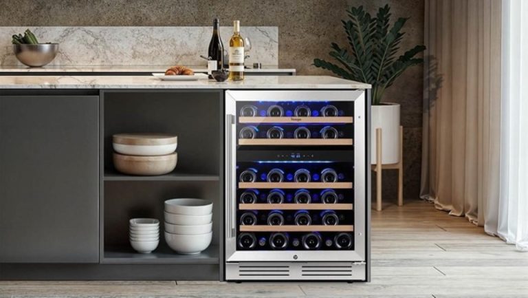 Another great spot is under the kitchen counter. This placement uses the lower space that often goes unused. An under-counter mini wine fridge is ideal and will easily fit in and not block the way through. It also stores bottles where they are not too far away when making meals or snacks.