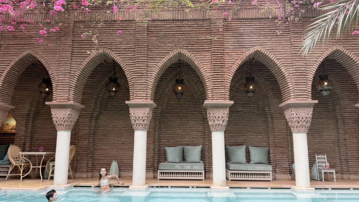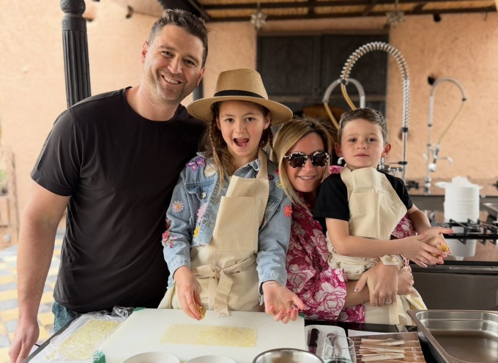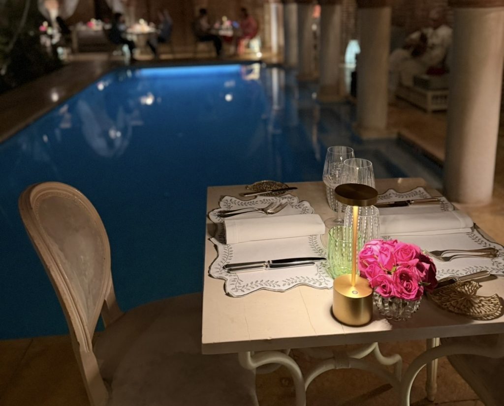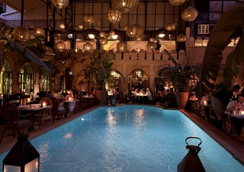 Beyond the walls of La Sultana, Marrakech reveals itself as a culinary destination in its own right… one where dining is not just a meal, but a total sensory experience. The city’s food scene is elevated, eclectic, and deeply atmospheric, blending traditional Moroccan flavors with global influences, incredible entertainment, and impressive immersive design. Some of our most memorable meals took place across the city, each offering a completely different lens into Marrakech’s vibrant dining scene. Lunch at DarDar Rooftop was a standout, with its breezy rooftop setting, chic crowd, and sweeping views over the Medina… perfect for lingering over fresh, flavor-packed dishes in the warm Moroccan sun. Dinner at La Trattoria transported us to a hidden Italian oasis, tucked behind lush gardens and candlelit pathways, where refined cuisine meets old-world charm in one of the city’s most romantic settings. At Bo Zin, the energy shifted to something more contemporary and electric… a stylish, open-air space where Asian-inspired cuisine, music, and a fashionable crowd come together seamlessly, making it a favorite for those looking for a lively night out. Then there was Palais Jad Mahal… a true showstopper and, without question, one of the most unforgettable dining experiences of our trip. Part restaurant, the other part performance, Palais Jad Mahal delivers a full-scale dinner club experience that feels both opulent and wildly fun. Think richly decorated interiors, velvet draping, glowing lanterns, and a nonstop lineup of live entertainment – from dancers to fire shows to costumed musicians – that keeps the energy high all night long. It was such a vibrant, immersive scene that we even let the kids stay up until midnight to take it all in (sorry grandparents!), completely captivated by the spectacle unfolding around them. Take note, Las Vegas… this is how dinner clubs are done. Together, these experiences prove that Marrakech isn’t just a feast for the senses visually… it’s a culinary playground that deserves just as much attention.