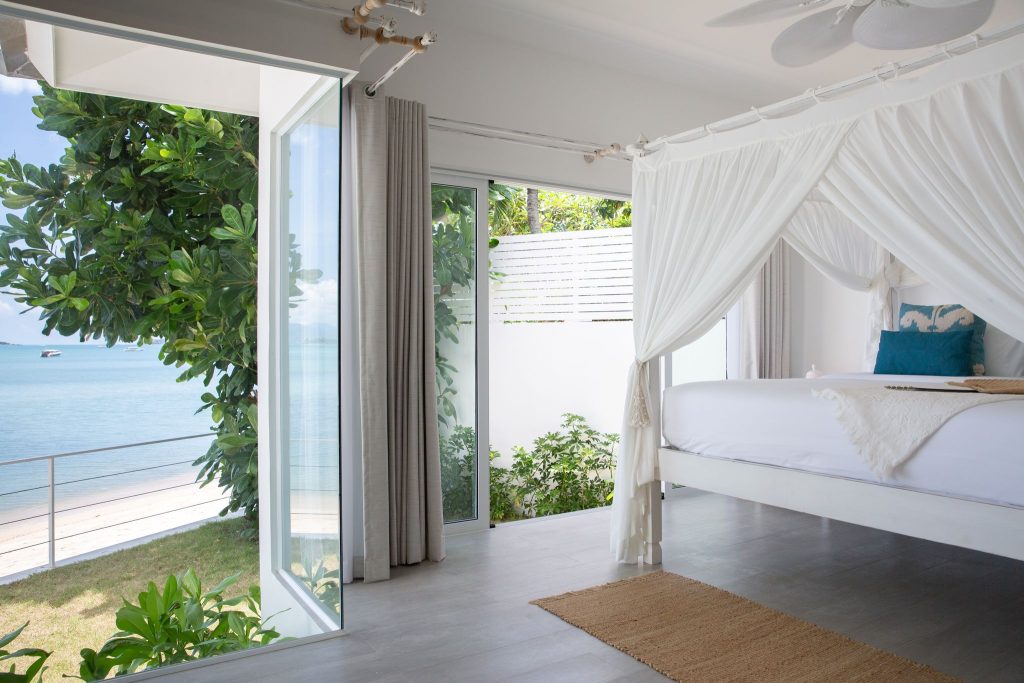 Each room reflects a relaxed coastal aesthetic, featuring whitewashed, artisan-crafted furniture from Northern Thailand, hand-carved statement headboards, and soft accents using Jim Thompson fabrics.