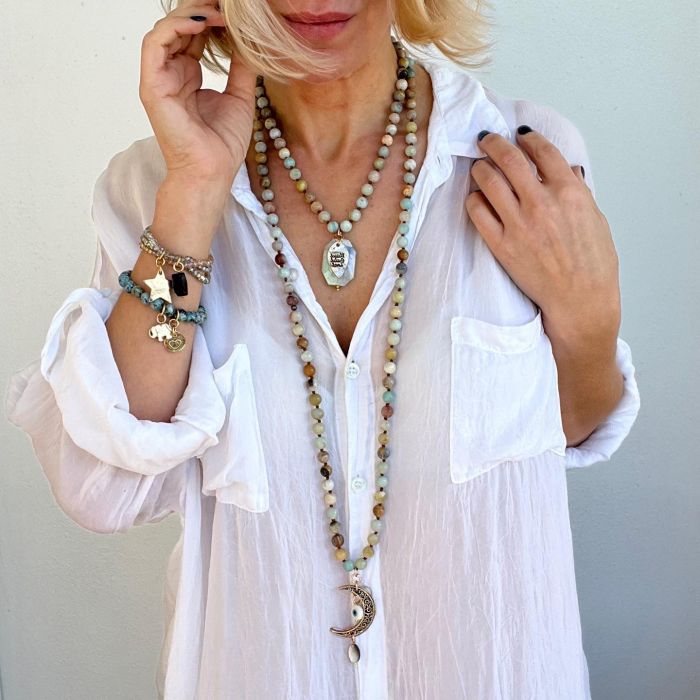 Katia Designs offers a handmade line of Bohemian chic-style spiritual jewelry that offers a variety of designs, including gemstones, natural elements, crystals, and seashells, and they come with an uplifting message. Her jewelry is popular with those who enjoy meditation, mindfulness, self-healing, and manifestation, and by those with a free spirit type of personality.