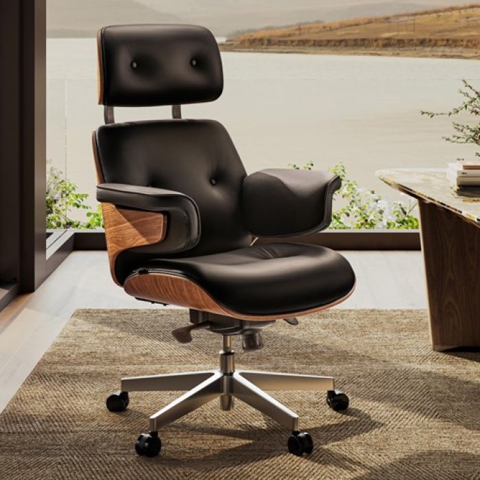 - Material: The entire chair is wrapped in premium full-grain leather, where the delicate texture and precise stitching combine to create an aura of understated authority. The polished aluminum alloy base balances visually with the streamlined backrest, lending modern office spaces a composed yet technologically sophisticated style.
