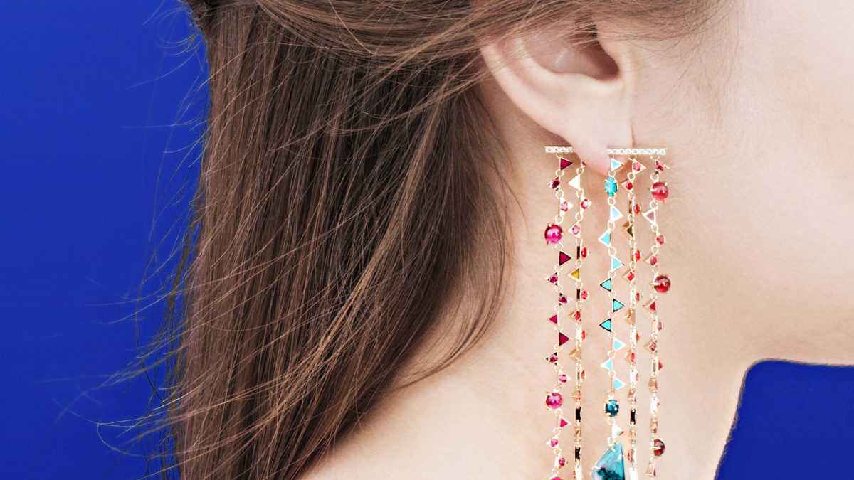 As a fine jewelry line, Nouvel Heritage uses 18-karat gold in most of their pieces, and favors gemstones like tourmalines, opals, sapphires and spinal over diamonds, which are used sparingly in their collection. Some of our favorite pieces includes a pair of long opal earrings that use three carats of blue opal, 0.45 carats of white diamond, 1.7 carats of red spinal and 6.57 carats of rhodolite. For more modern trendsetters, the torque collar offers the option of adding interchangeable chains and charms for a customized neck piece.
