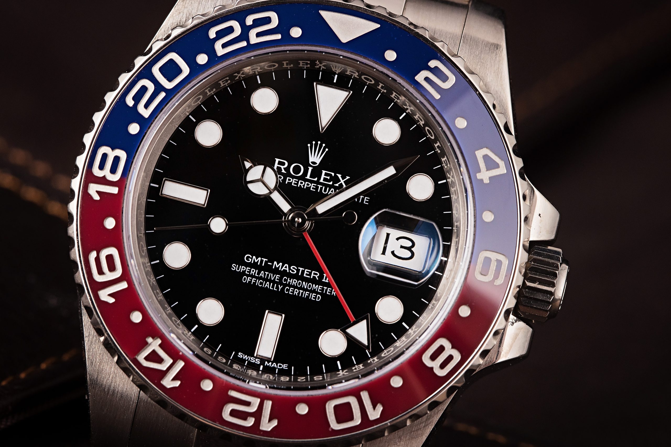 Small domed dial in bright blue synthetic spinel at 12 o’clock