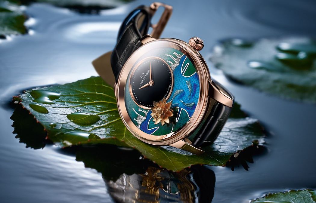 Jaquet Droz is known for their exceptional watches—mementos that can be handed down from generation to generation. Their Novelties collection, one of their more eclectic lines, doesn’t focus solely on precise timekeeping, but rather on the aesthetics of the piece—the decoration, design and craftsmanship that captures the beauty and artistry of the brand. The latest addition, the Petite Heure Minute Relief Carps, was created to capture the story of the carp, long believed to be a symbol of love and life.