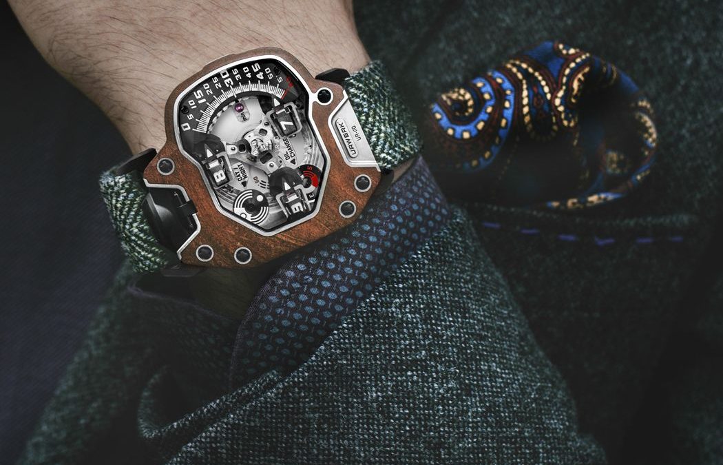 UR-110 Eastwood, the latest timepiece from Urwerk, offers a fun twist on their normally futuristic designs. Known for watches that look like something out of RoboCop, the updated Urwerk model is housed in a hipster wood-covered case with a tweed strap for a perfect juxtaposition of modern and vintage. The inspiration for a more dapper, fashion-friendly watch came from the designer’s desire to push the envelope and work with materials they had never used before. “We wanted something crazy. Sure, some people say that our designs are already eccentric enough, but we still decided to take it one step further,” explained Urwerk co-founder Martin Frei.