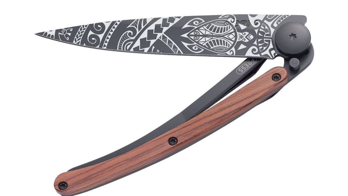 Deejo creates knives unique to each buyer. Those that are curious by nature can be treated to a personalized and engraved pocketknife. Create your own Deejo first by choosing the finish, handle and weight and then personalize the tattoo on the blade and as well as engraving on the handle. The lightweight, efficient and strong knife is easy to carry and becomes a personal object to wear like a second skin. Crafted with the utmost care and with respect to both the craftsmen and the environment, their products are sold all over the world. Tattooing a knife, just like tattooing on skin, personalizes a Deejo even more, adding a whole new dimension: identity. Diverse patterns and images inspired from the tattoo world adorn the Deejo blade, allowing you to create a treasured object, an individual piece that is uniquely you.