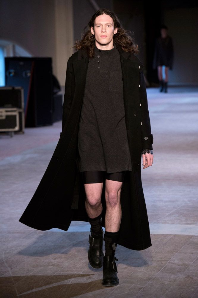 Duffle coats, duffle coats everywhere! For the Maison Margiela Fall/Winter 2016 men’s collection, outerwear was the star of the show, and the menswear staple was seen in a variety of colorways, cuts and fabrics. Elongated, tailored, oversized, sleeveless, layered, fringed, double-breasted, single-breasted—almost every imaginable rendition of the coat was present on the runway. The duffle closure was even found on blazers just to drive the point home.