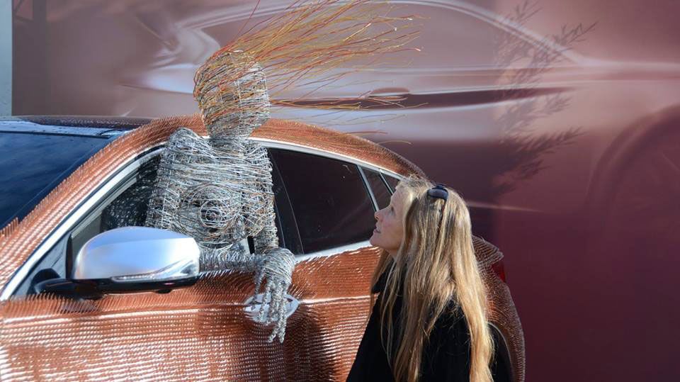 The London Art Fair (January 20-24) took place this past weekend and visitors were greeted at the entrance with Infiniti’s QX30 art car by British wire sculptor Rachel Ducker. The compact, luxury hatchback was covered with 48,000 copper tacks that took more than 130 hours to apply. The effect is certainly radiant, but tacks or no tacks, the standard version of the auto—with a 2.0-liter, four-cylinder turbocharged engine, producing 208 horsepower and connected to a 7-speed dual-clutch automatic transmission—looks sharp but won’t actually cut you when you try to wax your new ride.