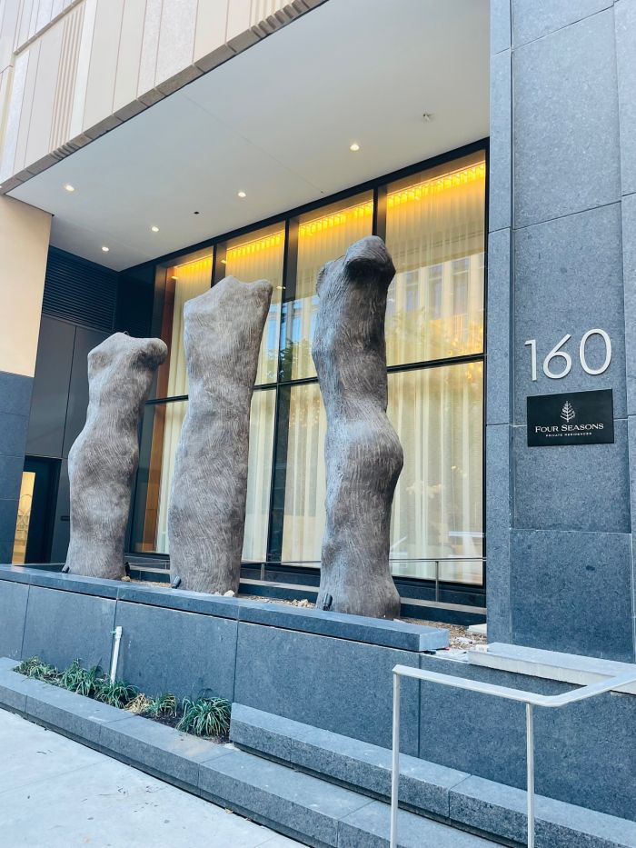 Walking up to the new Four Seasons Nashville, a new social hub of the downtown SoBro neighborhood, artist and sculptor Alan LeQuire’s Dream Forest welcomes guests at the entrance. The three tree-like statues resemble elongated human torsos on a colossal scale.