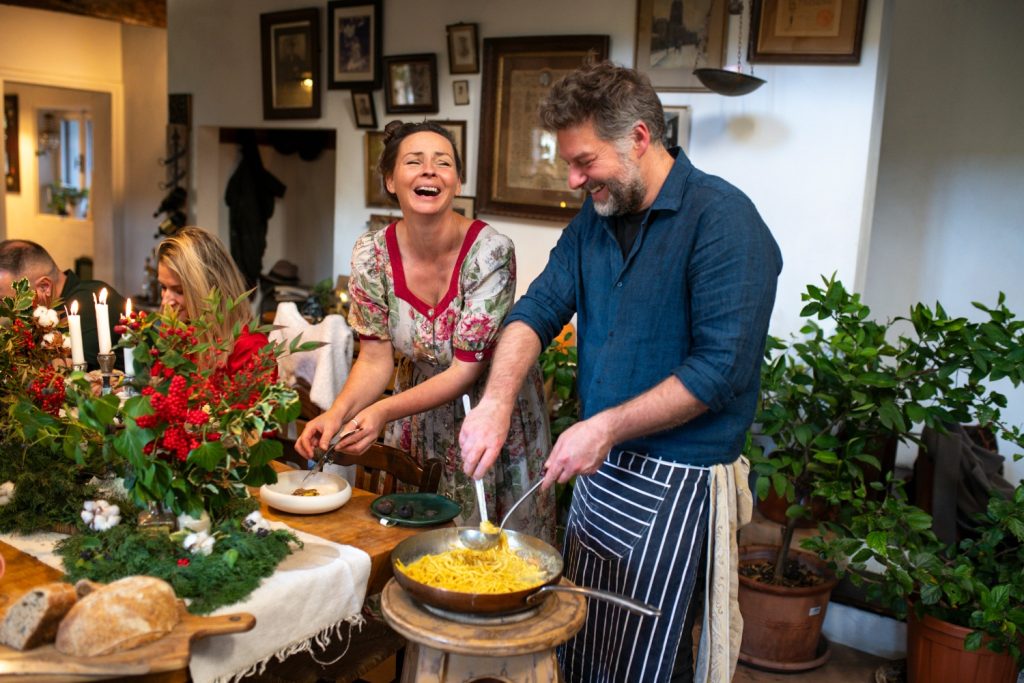 The next day blended culture and cuisine. A hands-on cooking class at OurRustica allowed participants to roll up their sleeves and prepare regional dishes (smoked local trout, arancini stuffed with mozzarella,vegetables, and pesto, student made tortellini, student made gnocchi with white ragu, and lemon and elderflower sorbet with dandelion and honey crumble) paired with wines from L’Antica Quercia. Later a visit to Lanificio Paoletti, a historic 10th generation woolen mill in Follina, showed the artisanal side of the region, before concluding the day with a visit to the Gregoletto winery and dinner at La Corte, a refined restaurant tucked into the Relais & Chateaux Hotel Villa Abbazia, in the medieval village of Follina.