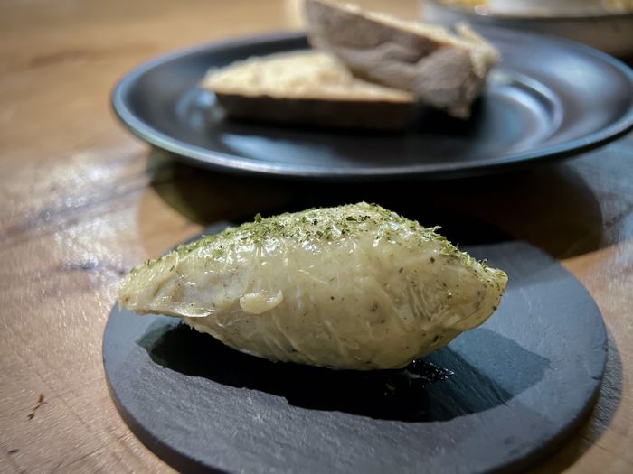 First, the bread. Or, in the native language, ‘broa com azeite de oliva.’ Traditional homemade Portuguese cornbread. Delightfully dense. Sweet, a little spiced, accompanied with olive oil, which you dip your bread into. If you’re more a fan of butter, you can also enjoy broa, a smoked version with chlorophyll powder.