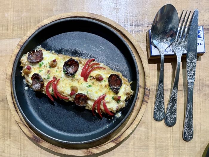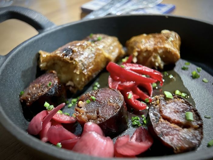 Delicious homemade sausages were up next, both smoked with olive wood, one with tingling chorizo and the other a mix of bread and chicken, a version specific to the region known commonly as ‘Jewish sausage, both accompanied by pickled onions.
