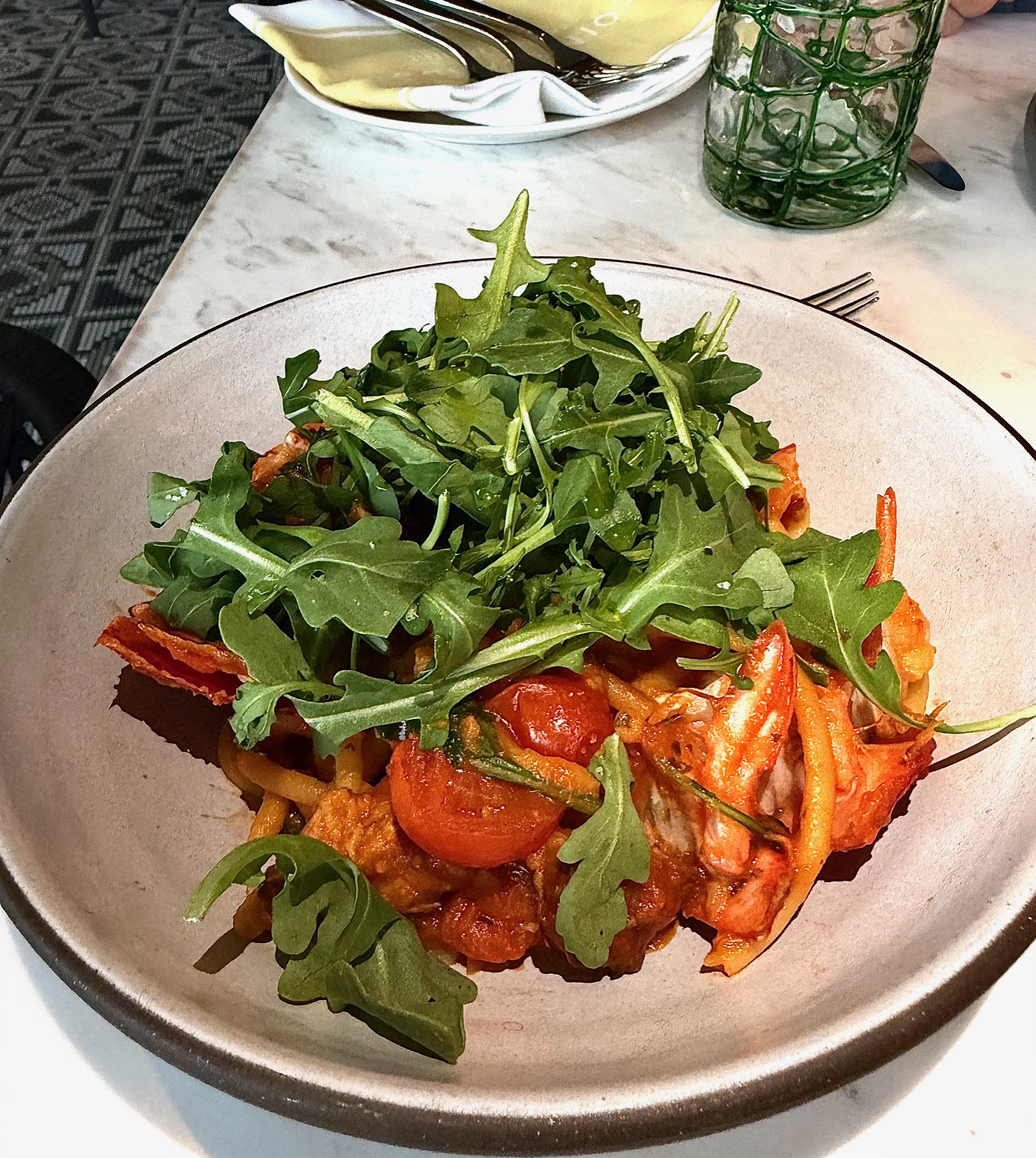 Pasta dishes featured on the menu include housemade Bucatini Maine Lobster and Chantrelle with ripe heirloom cherry tomatoes, basil, garlic, sun-dried tomatoes and a handful of arugula.
