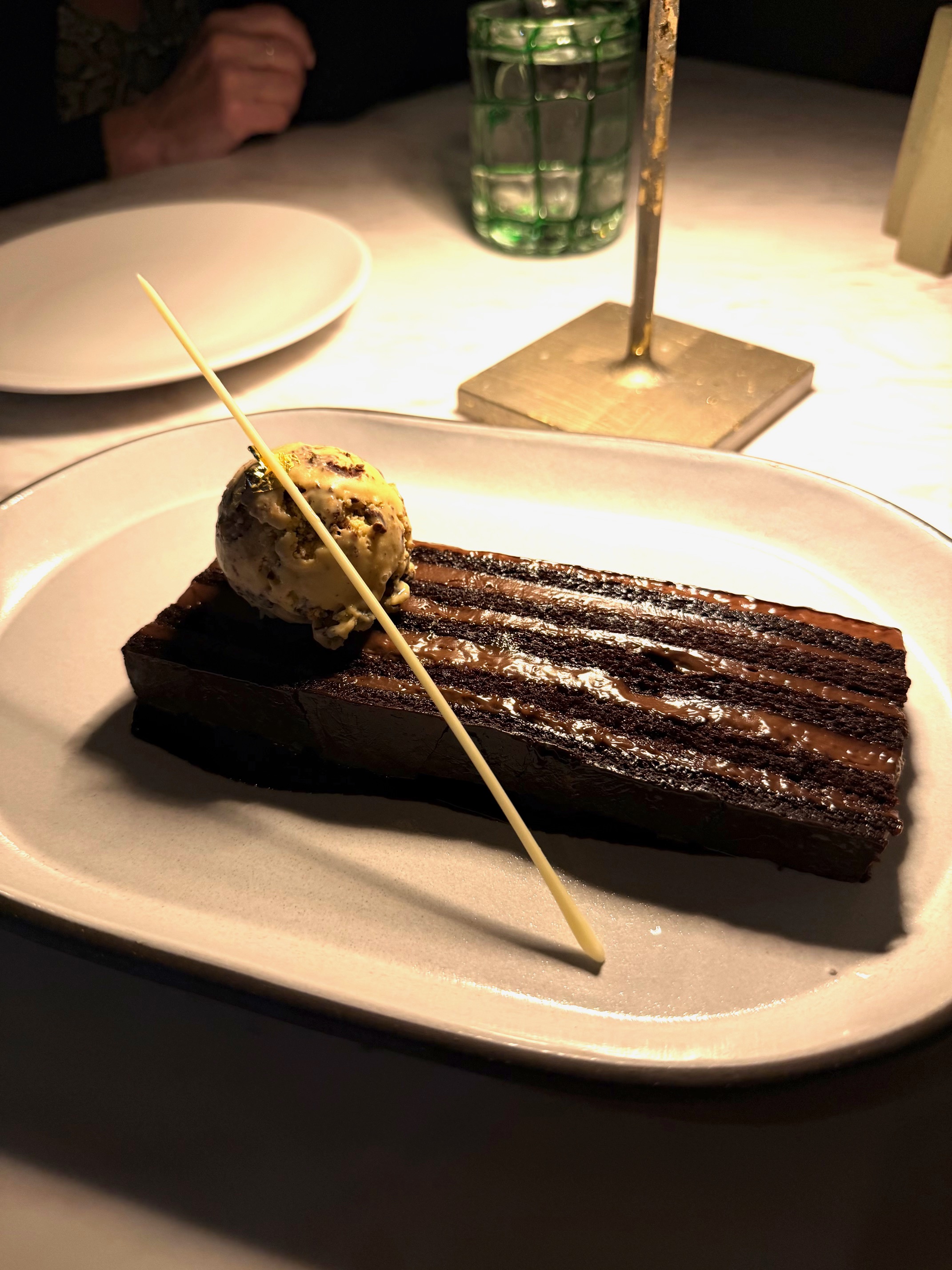 You will enjoy every calorie intake when ordering the multi-layer chocolate cake with a white chocolate garnish, flecks of edible gold leaf and salted caramel ice cream. It is one of the best chocolate cake slices, as it is of so rich, moist and chocolatey.