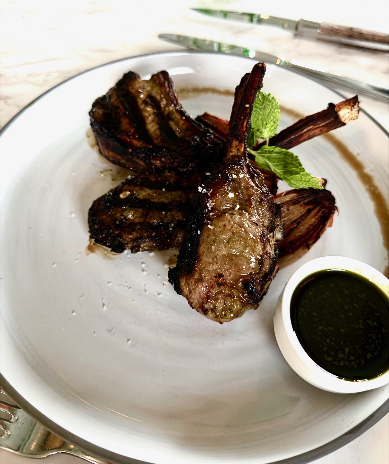 Meat lovers will appreciate the succulent Colorado Lamb Chops with confit shallot. It's served with a pleasing Provencal herb mint complement sauce.