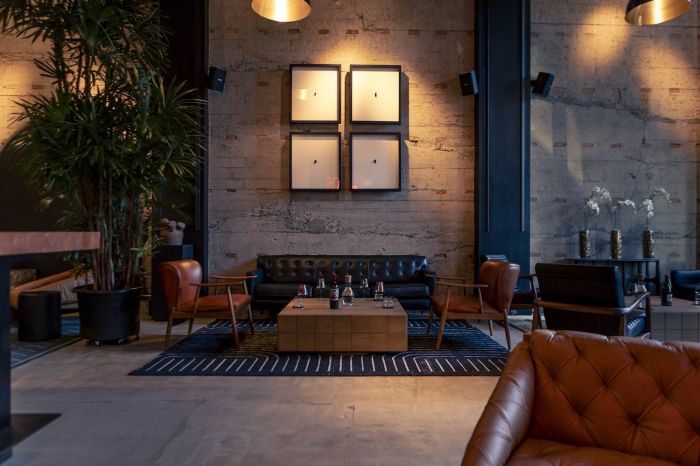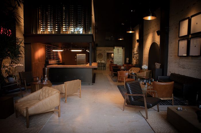 The design nods to the game “Rock, Paper, Scissors,” interpreted through rock textures, steelwork, rich leather, neon, and an installation of vintage scissors collected from around the world. Tastings follow the concept: “Rock” is a stand-at-the-bar experience; “Paper” is seated; and “Scissors” delivers a private, customized exploration of the most exclusive wines—often led by Phinney himself.