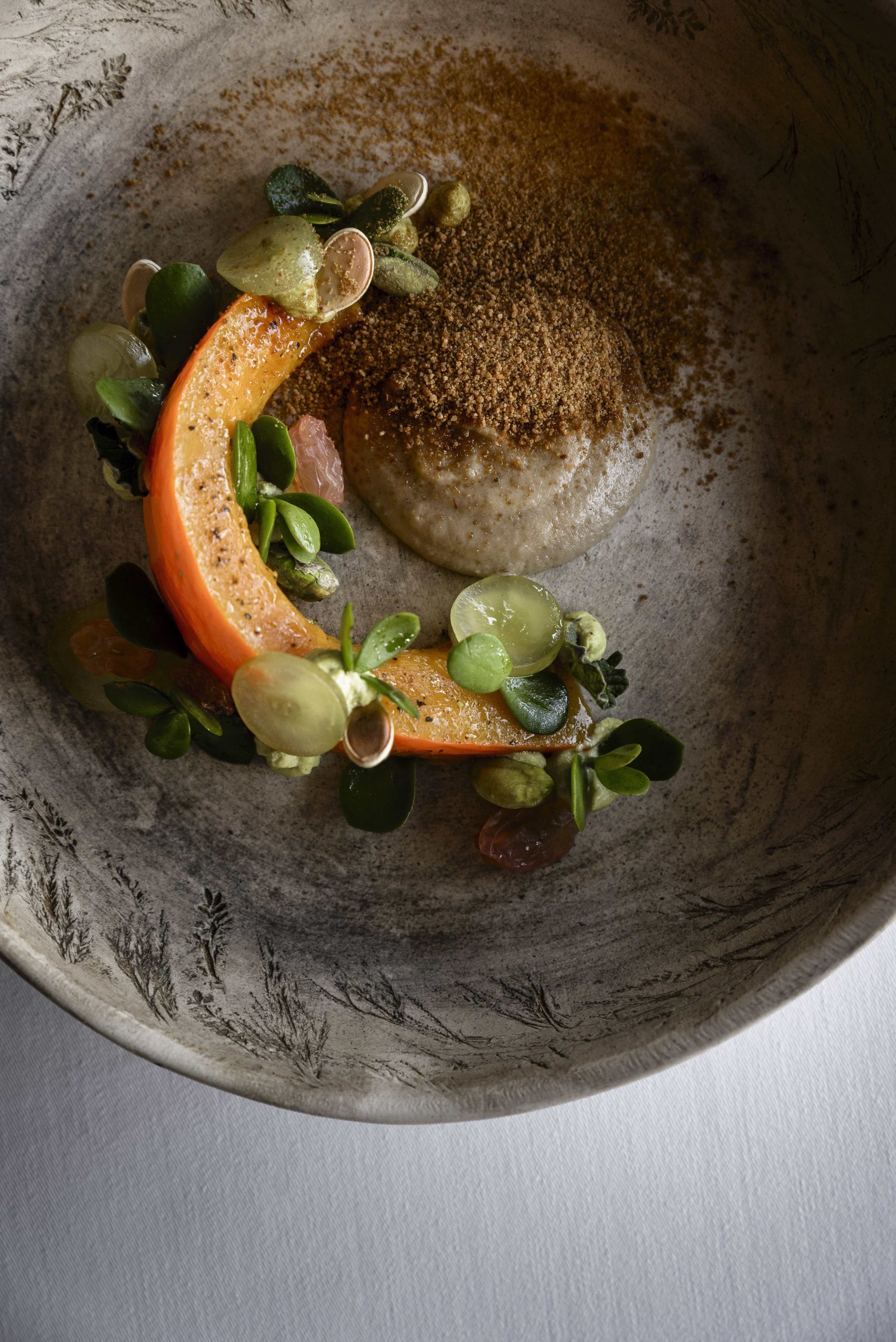After three years of research into the culinary traditions and ingredients of the Kalahari, South Africa’s first Michelin-starred chef, Jan Hendrik van der Westhuizen, opened Klein JAN at South Africa’s Tswalu Kalahari.  Every aspect of Klein JAN has been carefully designed and curated, including the chairs made from repurposed French oak wine barrels. A glass wall opens up in fine weather, creating a fully immersive dining experience in the undulating plains of the Kalahari that the Tswalu team strives to conserve. Other features of Klein Jan include a subterranean root cellar, located 13 feet below the ochre sands of the Kalahari. To access the cellar, guests step back in time at the 100-year-old Boscia House before opening a door to the descending helical staircase infused with the unmistakable scent of petrichor.