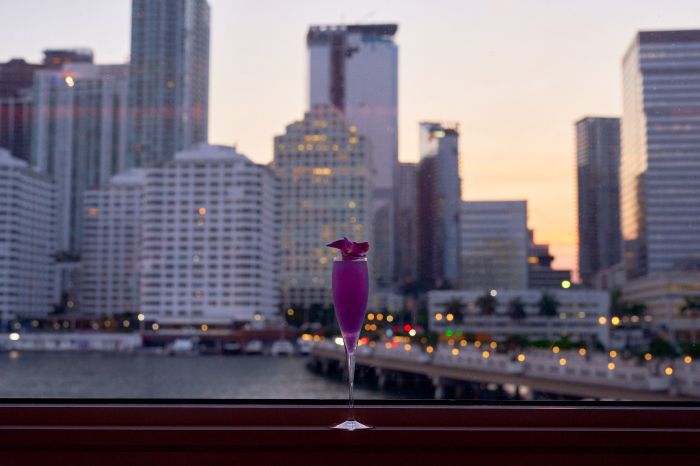The location just underwent a $200,000 redesign resulting in an updated, modern refresh. It has bold details inspired by the vibrant blues, golds and rich earthy colors found in the lush nature and surrounding Biscayne Bay, which are visible from the iconic views from the glamorous bar. The property is located on a small island in the middle of Brickell, which allows for unobstructed views of the area skyline.