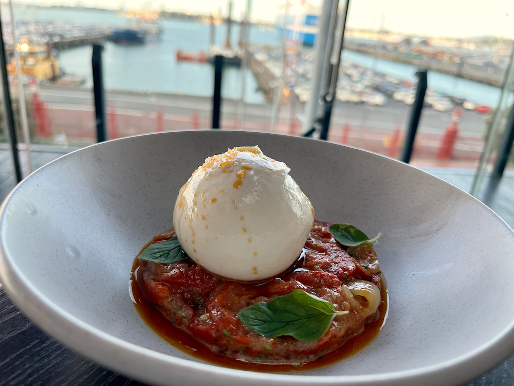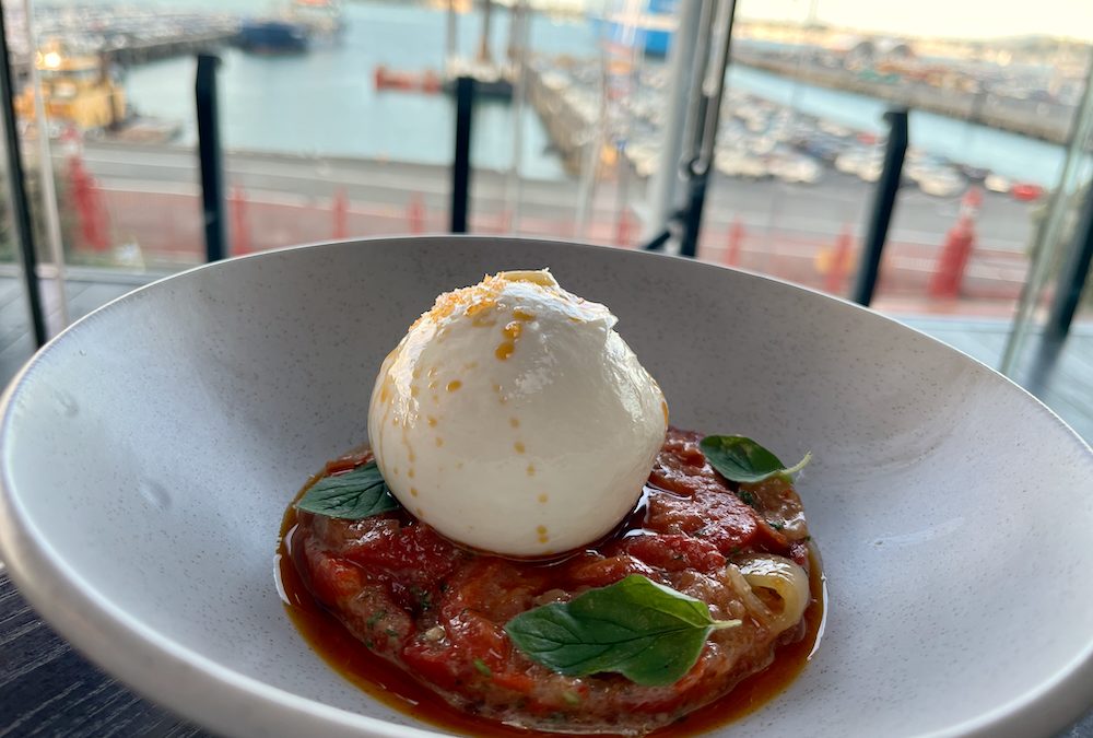 Designed by Paul Izzard of Auckland-based firm Izzard Design, it’s best described as ‘tapas bar meets dining room,’ comfortable without being overly fussy. Much of the seating is rounded booth-style but my companion and I were fortunate to be allocated one of the stand-alone tables beside floor-to-ceiling folding glass doors which stretch the length of the restaurant and beyond which is a narrow balcony and then a clear view of sailboats gliding gracefully along the Pacific Ocean.