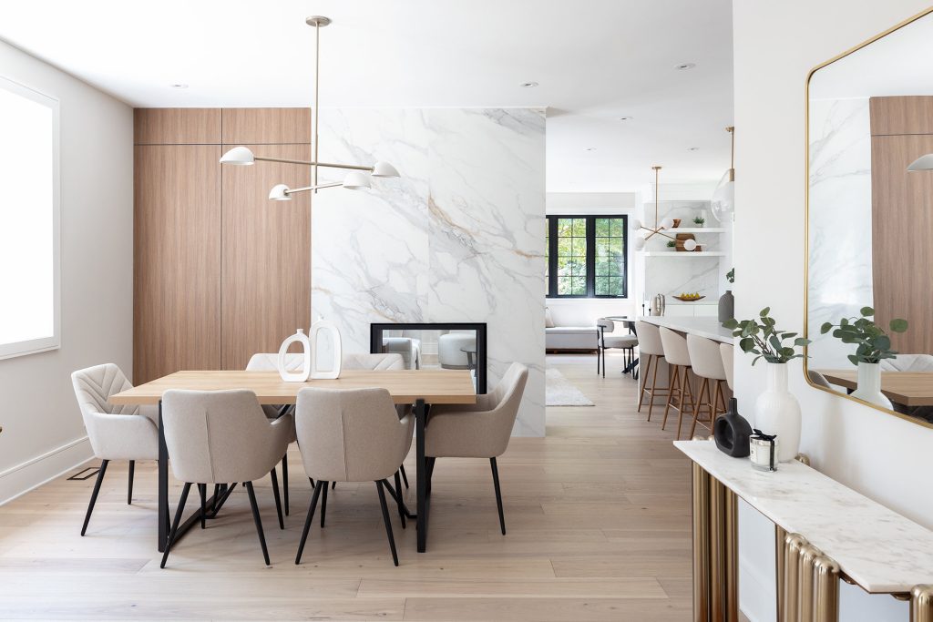 Inside, the home has been fully redesigned to blend timeless elegance with clean, contemporary finishes. An expansive open-concept principal living space anchors the main level, allowing natural light to move effortlessly through the interiors. Chef-grade appliances from Sub-Zero, Wolf, and Miele elevate the kitchen into a true culinary showcase, equally suited for intimate family dinners or large-scale entertaining.