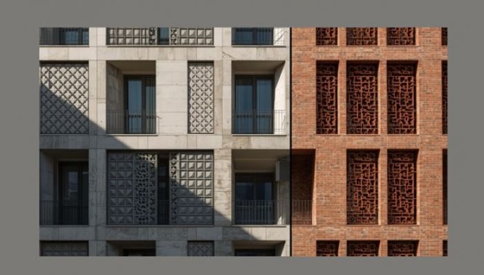Artisanal facade tiles, when produced using mineral-rich aggregates, controlled curing, and low-intervention finishing, offer a complementary way to introduce texture and rhythm without competing with the stone itself.