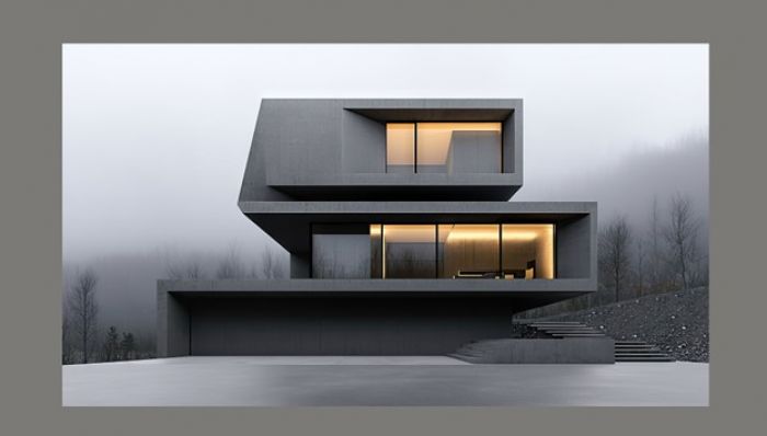 Every element serves a purpose, and ornamentation is replaced by the interplay of volume, void, and material texture.