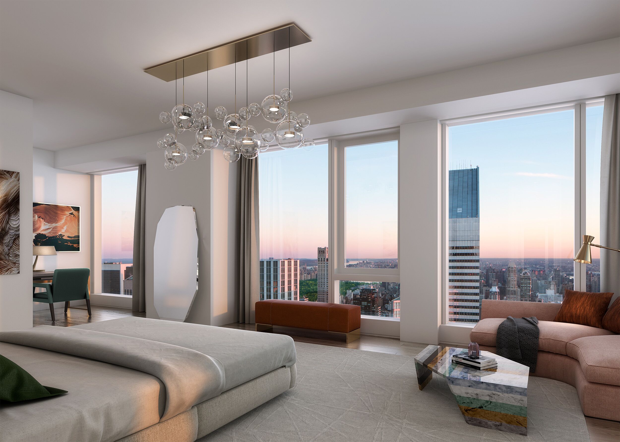 “The idea was to design the ultimate New York residential experience: sophisticated, glamorous and sleek, yet modern with the innate qualities that define a home,” said Alexandra Champalimaud, founder of Champalimaud. “We achieved this at The Centrale by creating a sense of warmth with the layering of neutral palettes, curated pieces and sublime materials.”
