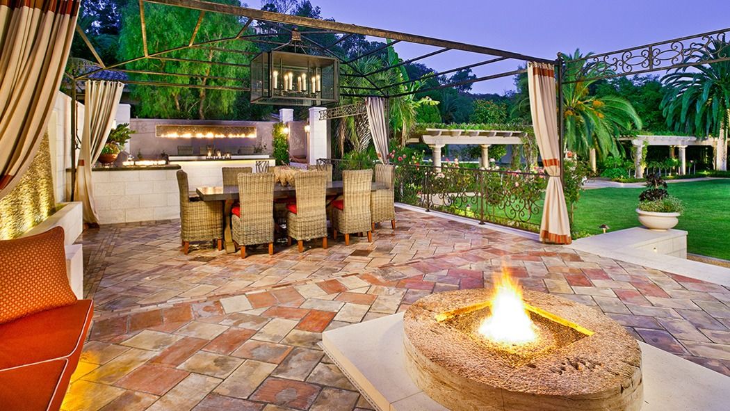 Also not to be missed is the tennis court, 13-seat movie theater, dog grooming station, resort-style pool, and spacious Buddha bar. Clearly designed to entertain, the estate has a live outdoor performance stage and a palm court lawn that is surrounded by a rose garden and able to seat 500 guests.