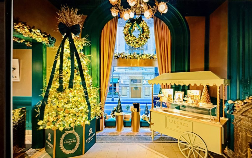 At the top is a grand peacock blue velvet bow. Nestled beneath will be packages of sweet treats and an Advent calendar counting down the season. Guests will also discover Ladurée’s signature macaron cart, making for the perfect photo opp. As an extension of the collaboration, Ladurée and The St. Regis New York will present a festive holiday afternoon tea experience in La Maisonette, the hotel’s tea salon and restaurant.