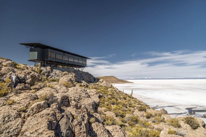 The world’s largest salt flats, known as Salar de Uyuni, hold some 10 billion tons of salt nearly 12,000 feet about sea level in Bolivia. From December to April, the flats look like an endless mirror due to copious rains, but from May to November, the entire area is completely dry, crackled with surreal, hexagonal shapes right in the salt. I had long wanted to see the stark white surface of Salar de Uyuni amid its flamingos, giant cacti, and culpeos (a wolf like creature referred to as the Andean fox). Fortunately, one of my favorite hotel brands, one that holds “GOD” as its unstated mantra, has a lodge right on the edge of this glorious landscape.