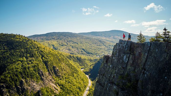 The mountains offer numerous trails and lookouts and some world class hiking. Cathedral Ledge in Bartlett rises above the Saco River Valley, its granite face offering sweeping views. Nearby, Diana’s Baths consists of smooth granite rocks and boulders where small waterfalls cascade into natural pools. These are popular for cooling off in summer, especially after a day of hiking where you’ll also take in views of surrounding peaks like Mount Chocorua.