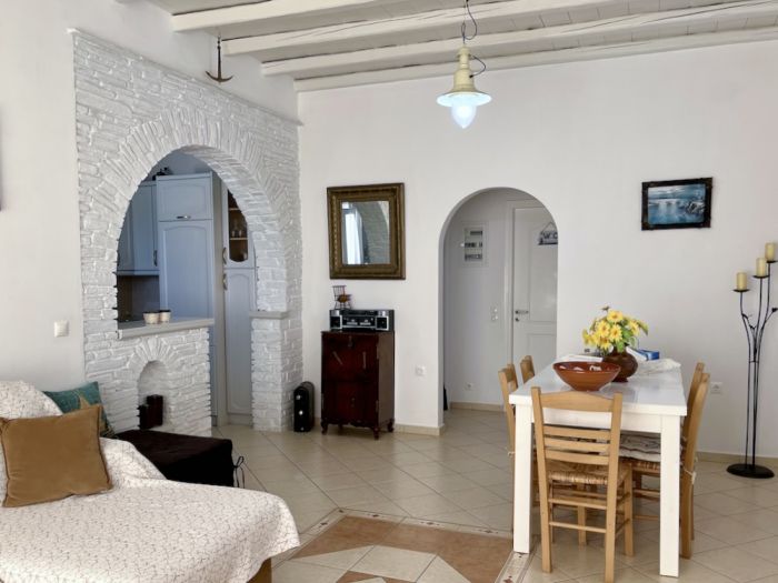 So cosy is Andreas Tinos Houses, three attractive houses in a cluster designed and built by the talented Andreas Lekasi, it feels more like a home-away-from home than an impersonal holiday rental. Its convenient location, close to a sandy beach on one side, the main harbour town of Chora on the other and a road up to the mountains in between makes it an excellent destination choice.