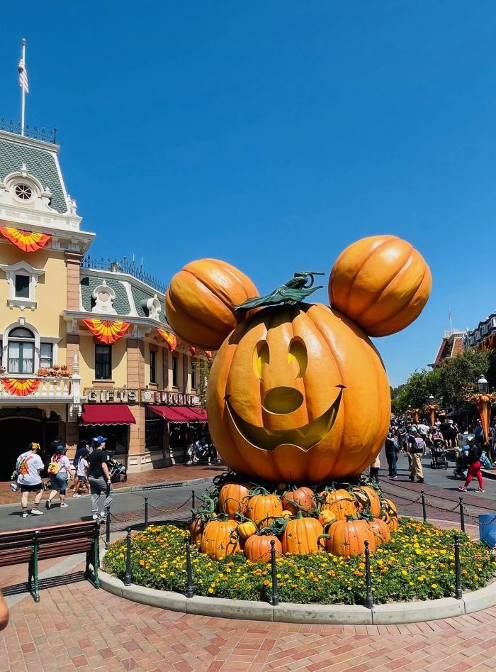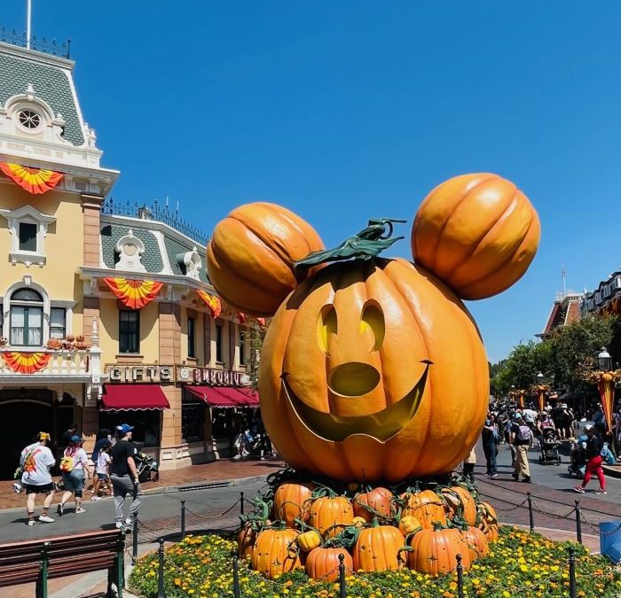 The most bewitching season at Disneyland is Halloween Time at the Disneyland Resorts. Start at Disneyland to see a massive Mickey Mouse Jack-o'-lantern greet guests in the Town Square park. Walk along Main Street, U.S.A. to see hundreds of carved pumpkins, fall florals, and themed window displays.