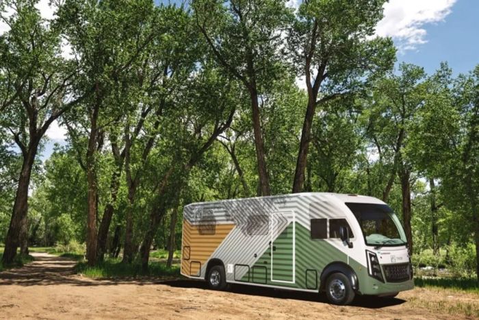 THOR Industries President and CEO Bob Martin says, “Electrification will play a central role in the future of mobility, including RVing.” So far, the collaborative effort with Harbinger is aiming for at least 500 miles on a full charge. As of this writing, there are no details yet about the interior layout and other possible trim packages.