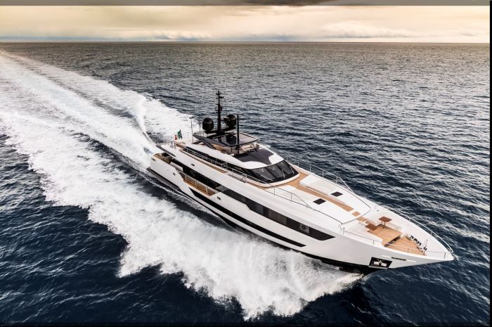 Yacht for sale is a 2018 FERRETTI CUSTOM LINE 125' 10" "Never Blue" CL120 Motor Yacht in Florida USA.