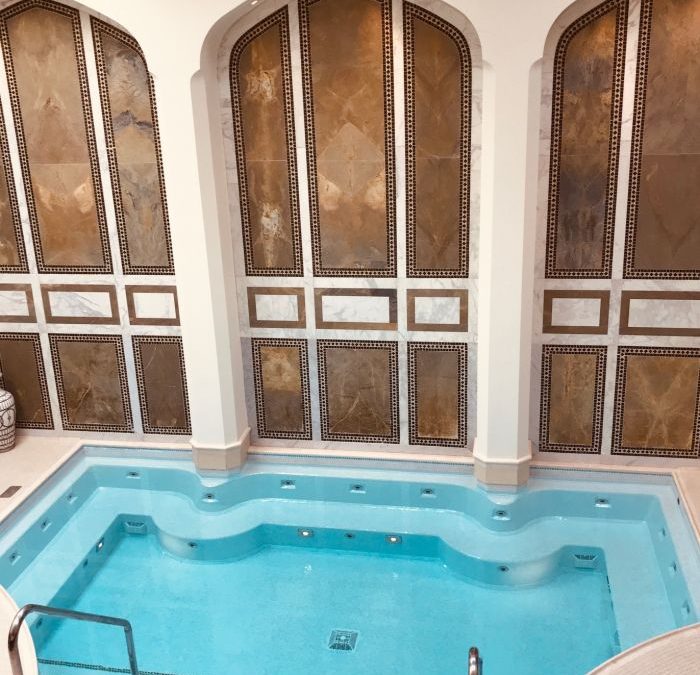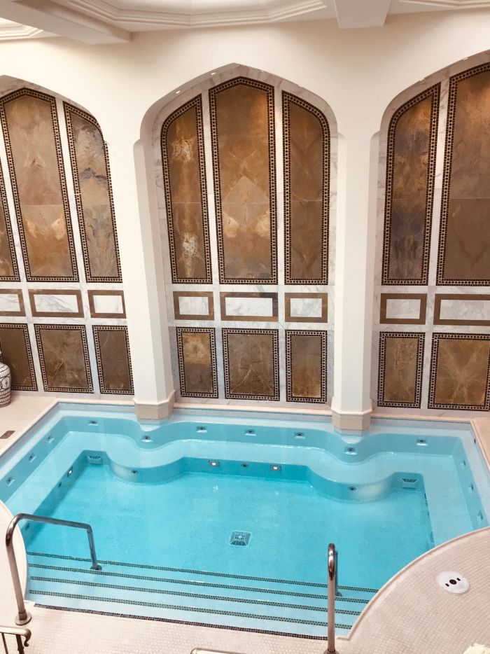 After my facial and massage experience was over, I looked into the mirror and noticed smoother skin, minimized pore size, and a decrease in the lines around my eyes. My skin tone was more even, and I looked noticeably brighter. Led back to the ladies locker room, I explored the Swiss showers, Turkish steam rooms, dry redwood saunas, whirlpools, and deluge showers before dressing and taking the elevator up to the top floor for a light lunch at The Rooftop Grill.
