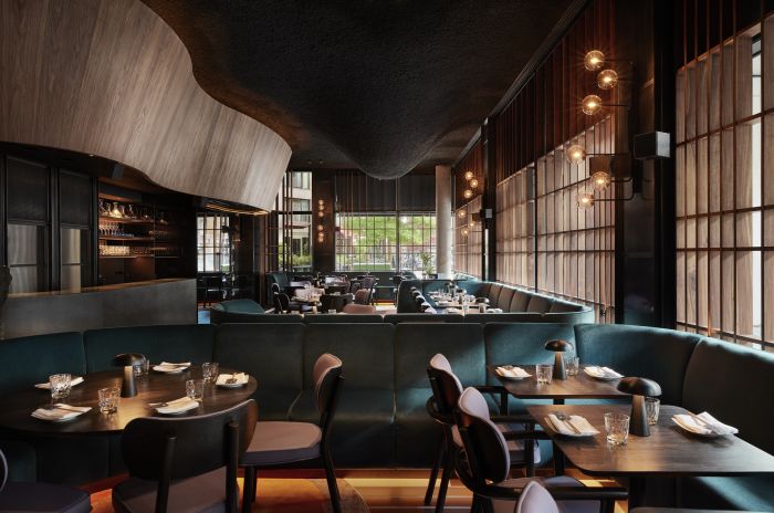 One of the capital’s best loved restaurants, Soho stalwart Chotto Matte, has sprouted an offshoot in trendy Marylebone Village. Perched on the corner of fashionable Chiltern Street, there’s a distinct buzz to this sophisticated, effortlessly elegant venue.Designed by award-winning architect and long-standing brand partner, Andy Martin Architecture (AMA), and inspired by Tokyo’s contemporary, minimalist urban culture, it features natural lava stone, dark moss-coloured banquettes, and dark wooden latticing on the floor-to-ceiling windows.Bright pop art injects colour into the low-lit, black-floored interiors, with a lively soundtrack creating a party atmosphere. In the basement – where the loos are located – you’ll find a neon glow-in-the-dark mural from Tokyo-based graphic artist Houxo Que.